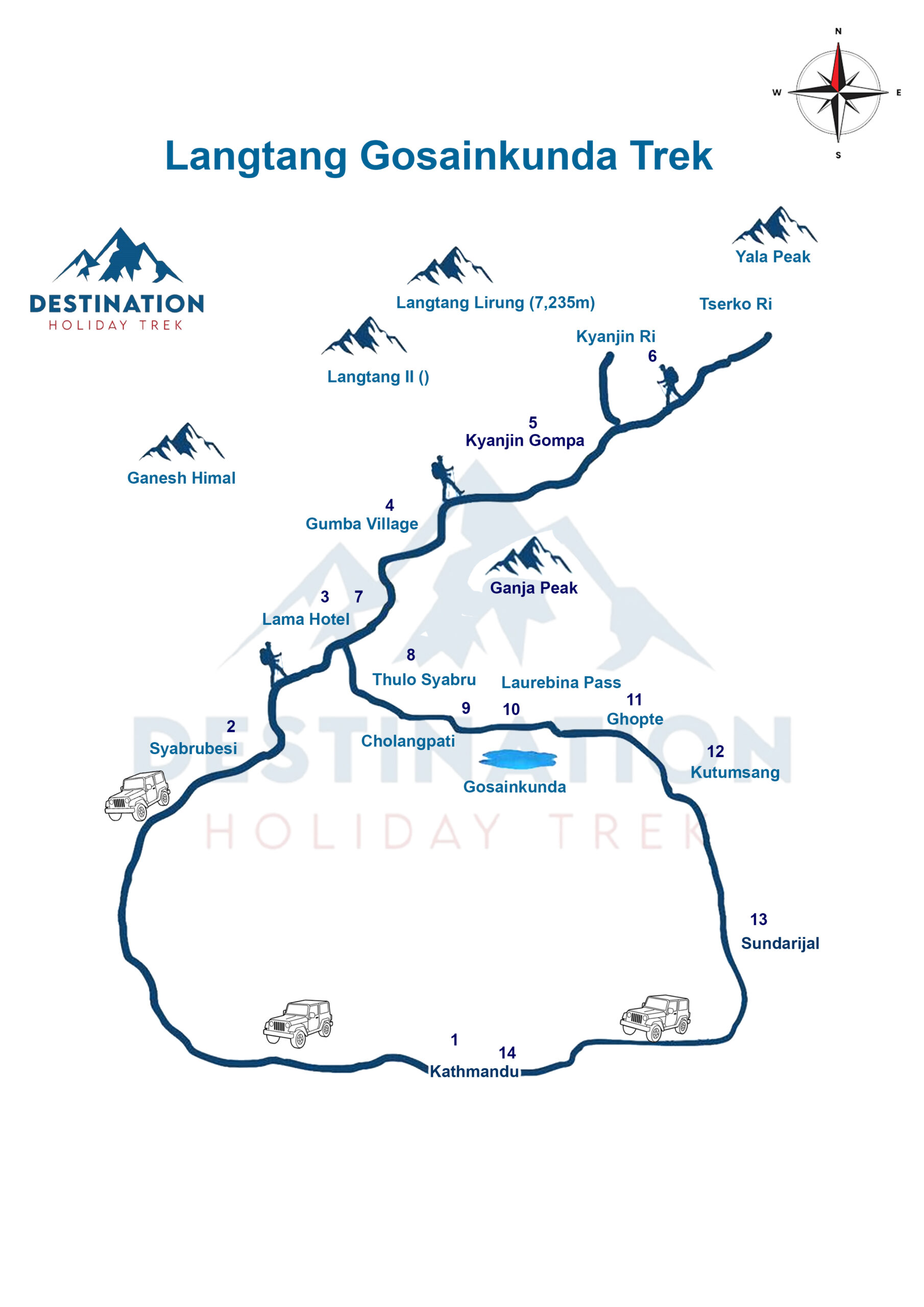 Duration: 7–10 Days (can be extended with Kyanjin Ri / Tserko Ri hikes or Gosaikunda option)