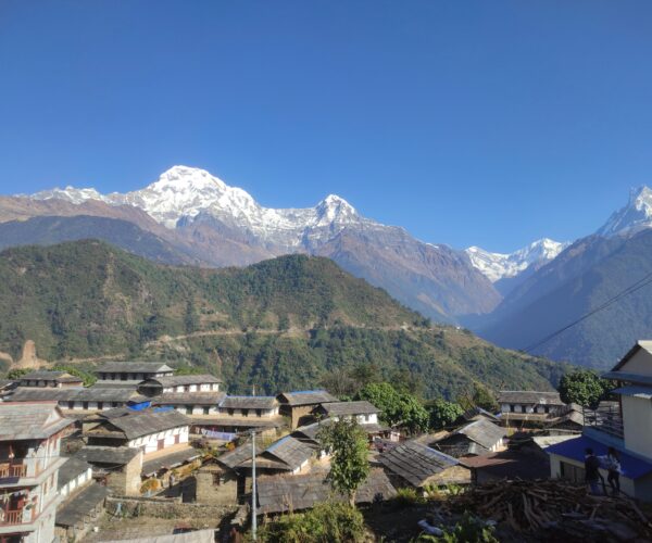 The journey usually begins from Pokhara, a beautiful lakeside city, and passes through traditional villages such as Ghandruk and Chhomrong. Along the way, you will walk through lush rhododendron forests, terraced fields, and river valleys before reaching higher alpine landscapes.