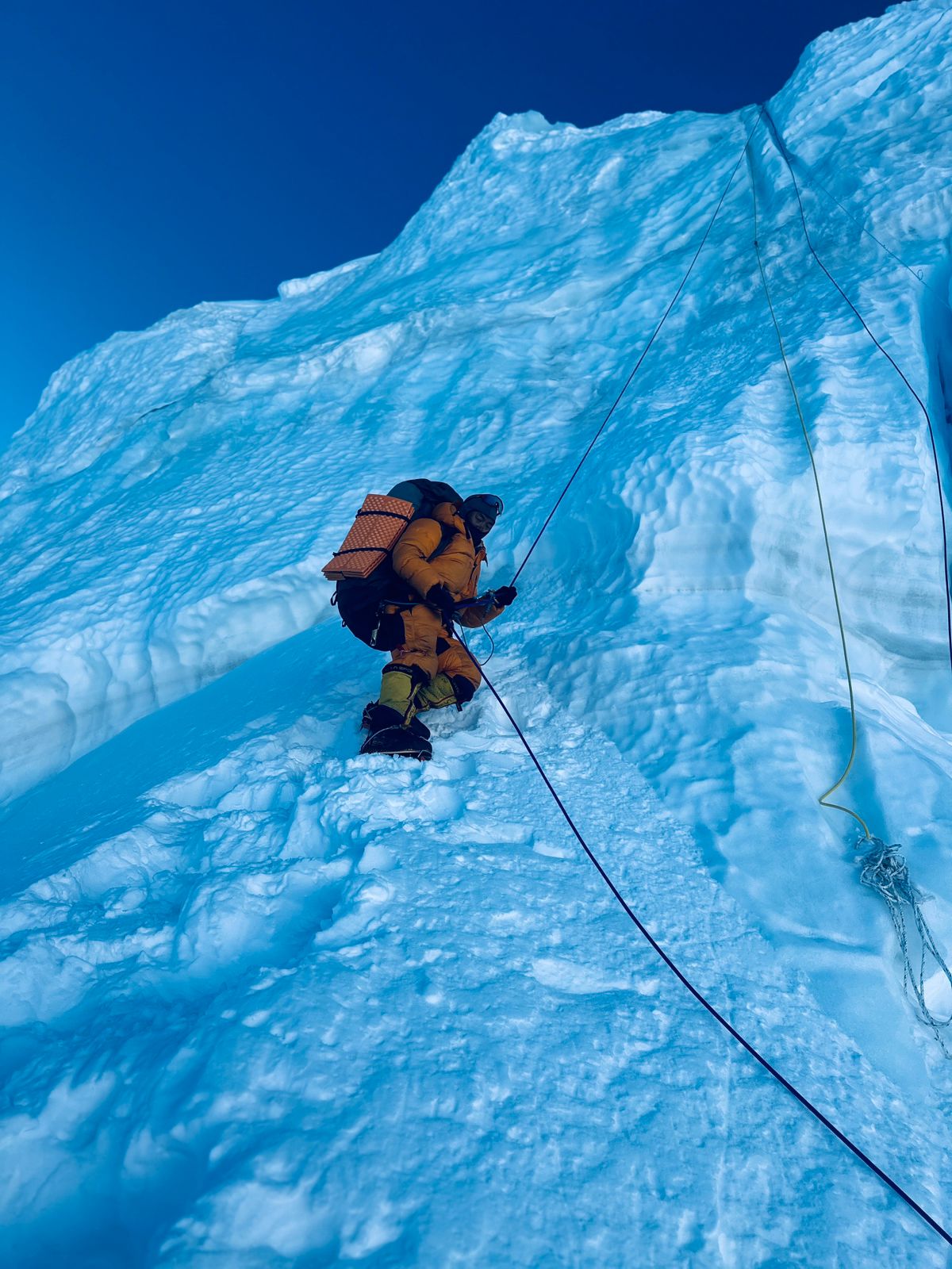 - Technical climbing experience involving glaciers, icefalls, and high-altitude camps